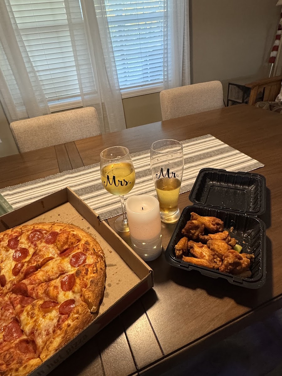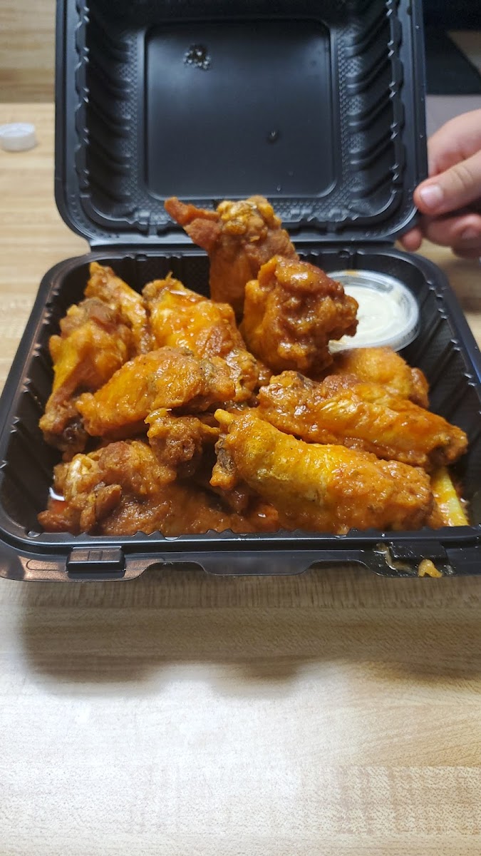 Dinner tonight from the Tower. The pizza was perfect and the girl who made my suicide wings was on point !! Extra crispy like I asked and they burnt my face off . Delicious. Keep up the good work !!